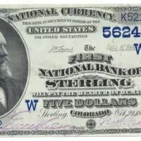 1882 $5 DB National Bank of Sterling Colorado. Charter #5624 CHOICE VF 35 PPQ