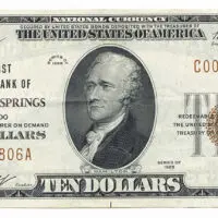 1929 $10 XF-AU National Bank of Colorado Springs Colorado. Charter #2179