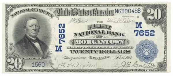 1902 $20 The First National Bank of Morgantown, Indiana