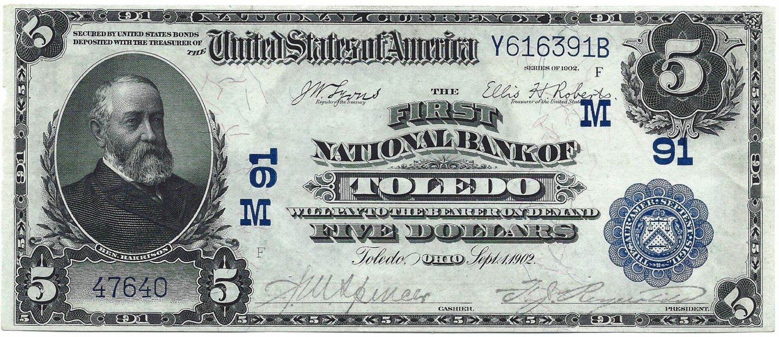 1902 $5 The First National Bank of Toledo, Ohio Charter #91