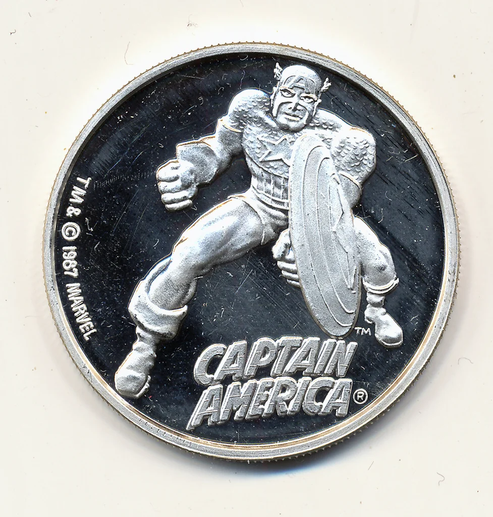 1987 .999 1 Oz Silver Marvel Captain America From The Cartoon Celebrities Series