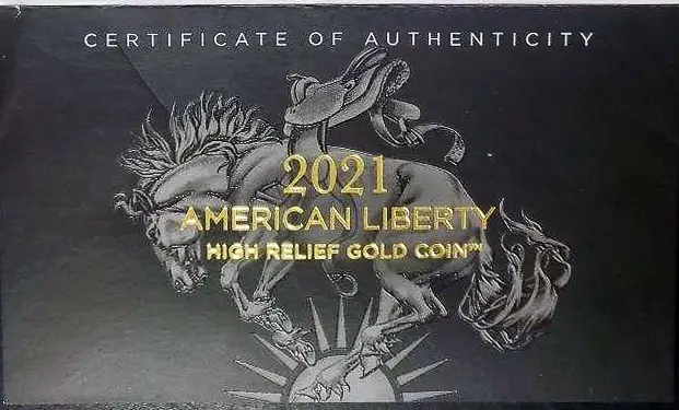 2021 $100 W American Liberty High Relief Gold Coin – Box and COA