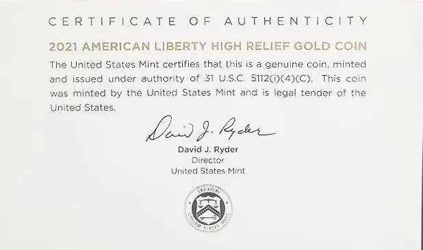 The 2021 American Liberty High Relief Gold Coin is the fifth coin in the American Liberty series. Since its debut in 2015, the American Liberty Gold Coin and Silver Medal Program features coins and medals with modern depictions of allegorical Liberty on the obverse. The reverse features complementary eagle designs. The designs represent what liberty means to each of us individually as Americans, or collectively as a nation.